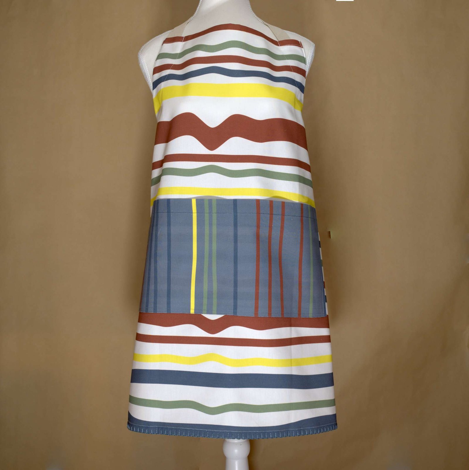 Not straight stripes. Clever aprons that hide creases